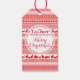 Balise cadeau de Noël Joyeux personnalisable. Votre nom et message sur le beau motif de style Laponie en arrière - plan rouge et blanc. Correspondance personnalisée des produits artisanaux de Noël et plus encore...