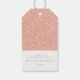 Faux Rose Gold Parties scintillant Cheers tag cadeau avec place pour un message de la Mariée et de la Salle sur le dos. Une façon parfaite de customiser les faveurs mariage et douche.