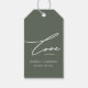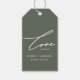 Sage Green et White Wedding Favor Gift Tag avec Élégante Calligraphie.