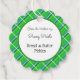 Une étiquette de produit rétro à la conserve ou à la cuisson personnalisée avec un script manuscrit et des lettres de dalle sur un motif plaid vert avec de petites bandes blanches et bleues pour les cornichons, confitures ou autres recettes de votre petite entreprise.