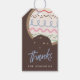 Montrez votre appréciation avec ce biscuit festif décorateur de fête de cadeaux, créé pour coordonner avec la collection "Décorez + Célébrez" fête de fête. Un gâteau à sucre rond est joliment décoré avec du glaçage et des arroses. L'illustration est placée sur un arrière - plan brun à la texture tachetée, et accompagnée du mot "merci" dans les lettres manuscrites.