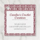 Cette illustration de dentelle au crochet blanc couvre un arrière - plan de couleur foncée pour un contraste élevé. Super classe look pour étiqueter vos produits finis au crochet. La taille plus grande est idéale pour les couvertures ou les pulls. Définissez votre propre nom d'entreprise et les coordonnées, ainsi que les instructions de soin pour l'article au crochet. Est livré avec ficelle pour la fixation à l'article. Design disponible en à feuillage persistant, bleu classique, peel orange, scarlett flamme (rouge), marron, turquoise, rose et marine. Vous pouvez changer la couleur à celle que vous préférez dans le personnalisateur.