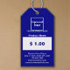 Balise couleur bleue avec un design générique et modèle pour divers produits. Customisez-le en téléchargeant votre logo d'entreprise, en tapant votre nom d'entreprise, adresse, numéro de téléphone, courriel, site Web et le nom et le prix de votre produit. Vous pouvez laisser l'espace réservé au prix vide si vous prévoyez d'écrire le prix ultérieurement. Veuillez vérifier l'apparence des côtés avant et arrière après avoir téléchargé le logo et tapé des textes. Si l'apparence vous plaît, vous pouvez passer votre commande maintenant. Si vous avez besoin de redimensionner et repositionner le logo et les textes pour s'adapter à cette balise, s'il vous plaît ajuster dans l'outil de conception. Vous pouvez également modifier le style de police, la couleur de police et la couleur arrière - plan dans l'outil de conception.