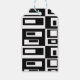 Balise cadeau avec carrés abstraits et rectangles noirs et blancs.