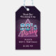 Les étiquettes cadeaux du Parti des années 80 avec une typographie de style rétro du Parti des années 80''. Les designs comprennent des éléments de violet foncé, de bleus et de roses, des éléments futuristes science-fiction des années 80, triangle et grille. Customisez avec l'événement et la date.