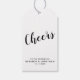 Script moderne Marine Bleu Mariage Vins Tags avec titre 'Cheers' en noir police de script moderne avec nom et date dans police sans serif moderne sur arrière - plan blanc.