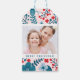 Vintage motif floral scandinave rouge et bleu en bleu, rouge et rose roux. Ajoutez votre propre photo et étiquette le dos pour un emballage cadeau de vacances unique et personnalisé!