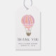 Utilisez ces étiquettes de baby shower sucré pour dire merci à vos invités! Le design contemporain pour bébé filles sur le chemin comprend une illustration de ballon à air chaud couleur rose et pêche aquarelle et du lettrage gris bleu fumé.
