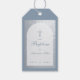 Étiquettes-cadeau Baptême Boy Dusty Blue Faux Arc Argent Script
