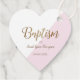 Étiquettes Cadeau Baptême de bébé rose personnalisé COEUR merci