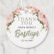Étiquettes Cadeau Baptême de fille verte Merci de fleurs roses