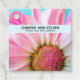 Marche de faveur de mariage avec une fleur rose et blanche vibrante. La photo de près de cette fleur enchanteresse attire vraiment votre attention. Une bande bleue pastel avec votre texte personnalisé à l'intérieur.