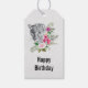 Des étiquettes cadeaux avec une belle illustration représentant un portrait léopard gris, noir et blanc. Ce bel animal est entouré d'un bouquet de fleurs tropicales. Élégant, exotique et joli.