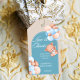 C'est un garçon bleu beige ballons teddy ourson arche élégante typographie simple baby shower merci préférez les étiquettes cadeaux modèle pour un bébé garçon.