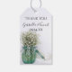 Merci à vos invités d'avoir assisté à votre fête de jardin douche nuptiale thème, célébration fiançailles ou cérémonie de mariage et réception lorsque vous joignez le charmant Bébé Blanc Respirer dans Blue Jar Vase Wedding Favor Tag à leur faveur de fête ou petit cadeau. Ces élégantes étiquettes à fleurs personnalisées sont dotées d'une photographie florale pittoresque de pot en verre bleu chic rustique remplie de fleurs brunes blanches et de satin blanc.