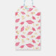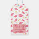 Balises cadeaux chic rose avec motifs roses, cet article affiche un arrière - plan blanc avec casquette et diplôme. Trendy et mignon, passez votre commande aujourd'hui !