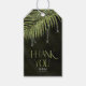 Évoquez une nuit d'été moody sous les tropiques, avec des bijoux en cascade des feuilles de palmiers en diamant incrustés ou supprimez les couches de bijoux pour un look légèrement plus conservateur. Cet ensemble est composé de feuilles chatoyants et d'arrière - plans texturés dans des teintes allant de l'olive claire au vert d'algues foncées. La balise de faveur "Merci" mariage montrée ici a une bordure supérieure de feuilles pétillants, une police serif élégante avec les initiales de la mariée et du marié et la date du mariage. Entrez facilement vos coordonnées en utilisant le modèle fourni. Affichez le lien de collection sur cette page pour voir tous les éléments correspondants dans ce bel ensemble ou recherchez ID830 pour voir d'autres options de couleur pour cette conception.