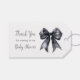 Pretty baby shower thank you tag featuring a black coquette bow ribbon. The words can be changed to suit your own details or requirements