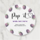 Carte d'invitation baby shower mignonne avec aquarelle illustrant les mûres. Le texte dit "Pop it! Quand elle apparaît." Éléments correspondants disponibles.