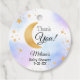 Nous sommes sur la Lune thème baby shower Merci étiquettes cadeau ont la lune dorée et les étoiles contre un arrière - plan bleu et rose. Personnalisez avec le nom et la date. Idéal pour ajouter à votre merci des sacs de faveur pour vos invités.