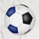 Ces étiquettes de fête d'anniversaire sur le thème du football sont entièrement personnalisables et présentent l'image réaliste d'une balle de football qui a des panneaux bleu, noir et blanc - personnalisez avec votre texte personnalisé - par katz_d_zynes