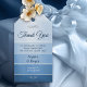 Une étiquette mariage design élégante en Merci avec un motif rayé bleu ton sur ton peint avec une doublure d'argent. Beau pour un mariage à thème bleu ou un mariage nautique.