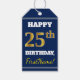 Étiquettes-cadeau Blue, Faux Gold 25e anniversaire + Nom personnalis