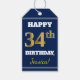 Étiquettes-cadeau Blue, Faux Gold 34e anniversaire + Nom personnalis