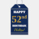 Étiquettes-cadeau Blue, Faux Gold 52e anniversaire + Nom personnalis