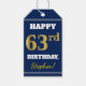 Étiquettes-cadeau Blue, Faux Gold 63e anniversaire + Nom personnalis