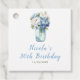 Belle marque de faveur d'anniversaire avec des fleurs de pivoines bleues dans un bocal de mason. Parfait pour un anniversaire. Les mots peuvent être changés en fonction de vos propres détails ou exigences