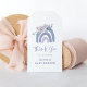 Ces adorables étiquettes cadeaux de baby shower présentent un style boho tendance et un script manuscrit tendance qui dit "merci". Un arc-en-ciel bleu poussiéreux et violet joli peint est décoré de fleurs d'aquarelle assorties sur un simple arrière - plan blanc.