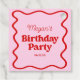 Étiquettes Cadeau Bordure rouge rose vague fête d'anniversaire