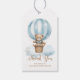Boy Blue Teddy Bear Moon Baby Shower Favor Gift Tags features an adorable watercolor illustration of a teddy bear on a blue hot air balloon.