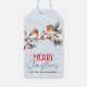 Branch with robin birds and berries Christmas holiday gift tag. This charming Christmas design showcases a fir branch with berries and redbreast robins on it. The background is of pale blue color. The phrase "Merry Christmas" combines script and decorative fonts. Personalize it with your own details.