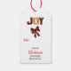 Sur le devant de cette étiquette cadeau de vacances est l'image d'un adorable petit chien maltais portant un casquette de Père Noël rouge et blanc. Le texte du style du buffle placé en haut indique "Joyeux Noël". Le verso de la balise contient du texte plus stylisé qui dit "JOY" et un arc de buffle plaid, avec des champs de texte pour vous permettre de customiser. Assurez-vous de voir le papier d'emballage cadeau correspondant dans notre magasin.