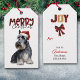 Sur le devant de cette étiquette cadeau de vacances est l'image d'un adorable Terrier écossais portant un casquette de Père Noël rouge et blanc. Le texte du style du buffle placé en haut indique "Joyeux Noël". Le verso de la balise contient du texte plus stylisé qui dit "JOY" et un arc de buffle plaid, avec des champs de texte pour vous permettre de customiser. Assurez-vous de voir le papier d'emballage cadeau correspondant dans notre magasin.