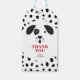 Étiquettes de remerciement de fête d'anniversaire de chien avec des taches de dalmatien noires.