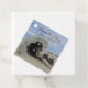 Cette étiquette de faveur est parfaite pour un mariage sur la plage avec une belle photo d'un grand morceau de bois flotté sur le devant de l'étiquette. Le bois flotté a été rejeté sur une plage de l'océan Pacifique et a lentement formé un cercle creux en son centre. Le sable brun met en valeur le ciel bleu parsemé de couches de nuages. Le nom des mariés ainsi que la date du mariage peuvent être facilement personnalisés. Le verso de l'étiquette de faveur affiche une couleur unie bleu clair ainsi que des mots de remerciement qui peuvent être personnalisés selon vos besoins.
