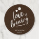 Simple brun moderne Love is Brassage la marque de faveur sera idéal pour le thé fiançailles et mariage ou les faveurs café. Customisez ces étiquettes de faveur avec vos noms et la date de l'événement.
