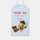 Le Capitaine Parrot tient un coffre au trésor sur cette drôle d'étiquette cadeau en Merci. Le capitaine Parrot apparaît au verso de l'étiquette cadeau, avec un bateau de pirates, des ballons, un coffre de richesse, des queues de sirènes et des dauphins. Avec cette étiquette cadeau personnalisée, vous pouvez ajouter une touche personnelle à votre offre cadeau ou à vos sacs de faveur.