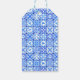 Étiquettes-cadeau Carreaux bleus méditerranéens Fleurs roses Boule d