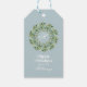 Célébrez la saison des fêtes avec ces élégants accents de verdure bleu et d'aquarelle. Cette conception comprend un monogramme personnalisé dans une couronne verte aquarelle avec une option pour ajouter votre propre message personnel.