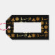 Tags cadeaux avec un look de luxe en noir avec en faux or des icônes X-mas comme bougie, flocon de neige, arbre et rennes.