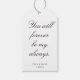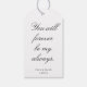 "Tu seras à jamais mon toujours." Belles étiquettes avec des citations soigneusement choisies pour capturer l'amour et le parcours d'un couple qui va bientôt se marier ensemble pour vos centres de table de mariage ou de shower de mariée.