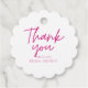 Ces étiquettes de remerciement pour la cérémonie de mariage avec un nœud rose minimaliste présentent un nœud rose vif à pois roses sur fond à pois noirs et blancs avec un texte indiquant qu'elle va se marier. Un thème de cérémonie de mariage avec un nœud rose parfait pour votre grand jour.