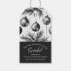 'Tis The Season To Be Grateful Corporate Christmas Gift Tags présente un élégant bauble de Noël aquarelle décoré de flocons de neige et de feuillage d'hiver dans un luxe chic gris foncé et blanc avec le texte "Tis the time to be Grateful" dans la typographie de script de calligraphie moderne. Personnalisé avec votre message personnalisé et le nom de l'entreprise. Conçu par ©Evco Studio www.zazzle.com/store/evcostudio
