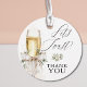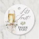 Cette étiquette de remerciement "Let's Toast" ajoute une touche élégante et festive à toute célébration de fiançailles. Avec une flûte à champagne scintillante, un nœud aquarellé et une verdure délicate, cette étiquette améliore les faveurs, les sacs de bienvenue, les boîtes de dessert et les cadeaux pour les invités. Conçue avec un script "Merci" assorti, elle est parfaite pour les fiançailles hivernales, les événements de mariage et les célébrations saisonnières. Complète les autres articles de la collection "Let's Toast" pour un thème d'événement magnifiquement unifié.
