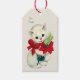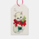 Étiquettes-cadeau Chaton de Noël Rétro Adorable Blanc Ruban Rouge