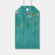 Un tag cadeau de remerciement, peut être personnalisé pour d'autres occasions aussi. Une silhouette avec un cavalier équestre sur un cavalier de chasseur, naviguant au-dessus d'une clôture. Arrière - plan en métal rouillé de couleur verte.